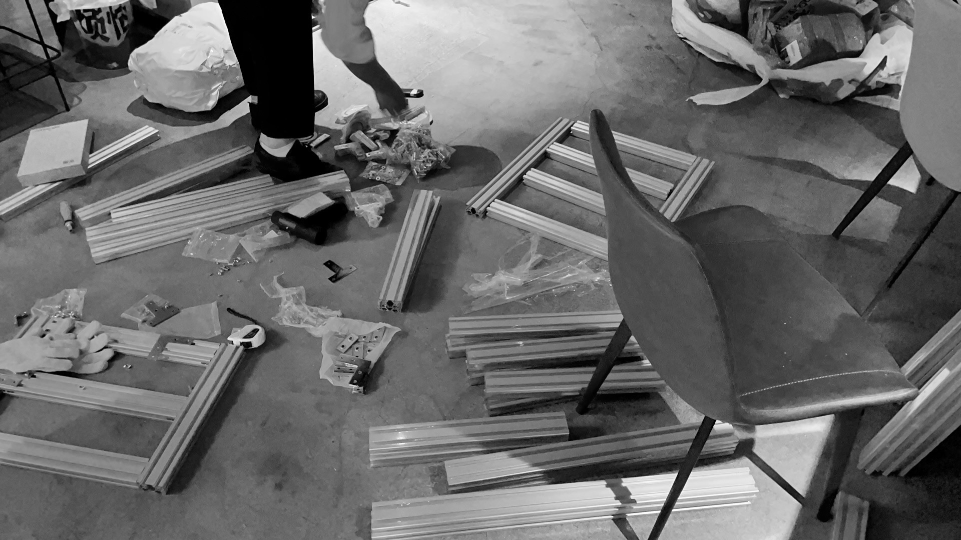 in the thread series, aluminum extrusion is used as the frame, where chunky yarn is weaved as seat and back cushion. the extrusions offer great stability as well as the possibility to reconfigure, while the weaving provides comfort and a sense of contrast to the coldness of metal.